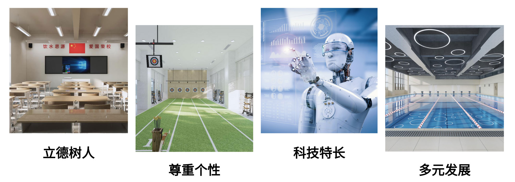除高品质学习与生活设施外,学校还拥有400米国家田联标准田径场、天然草足球场、室外篮排羽毛球场、空中网球场,以及室内FIBA/NBA标准篮球场与排羽毛球场、恒温恒湿泳池、射箭馆、壁球馆、沙狐球馆、乒乓球馆、健身房等特色运动设施,可满足学生强身健体、休闲运动所需。
