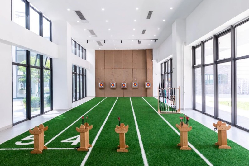 运动乐园:国际篮联标准室内篮球场、400米国家田联标准田径场、天然草足球场、射箭馆、壁球馆等,满足竞技与休闲需求。