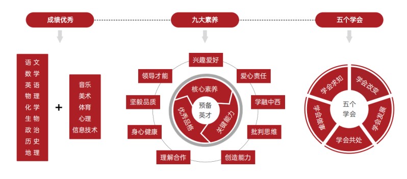 培养目标:通过实施“明贤教育”培养明贤学子具有学科成绩优秀、“九大核心素养”和“五个学会能力”,培养具有国家情怀、国际视野、科技特长、追求卓越、综合素质全面发展的适应未来社会发展要求的高品质、科技型、国际化的预备英才。