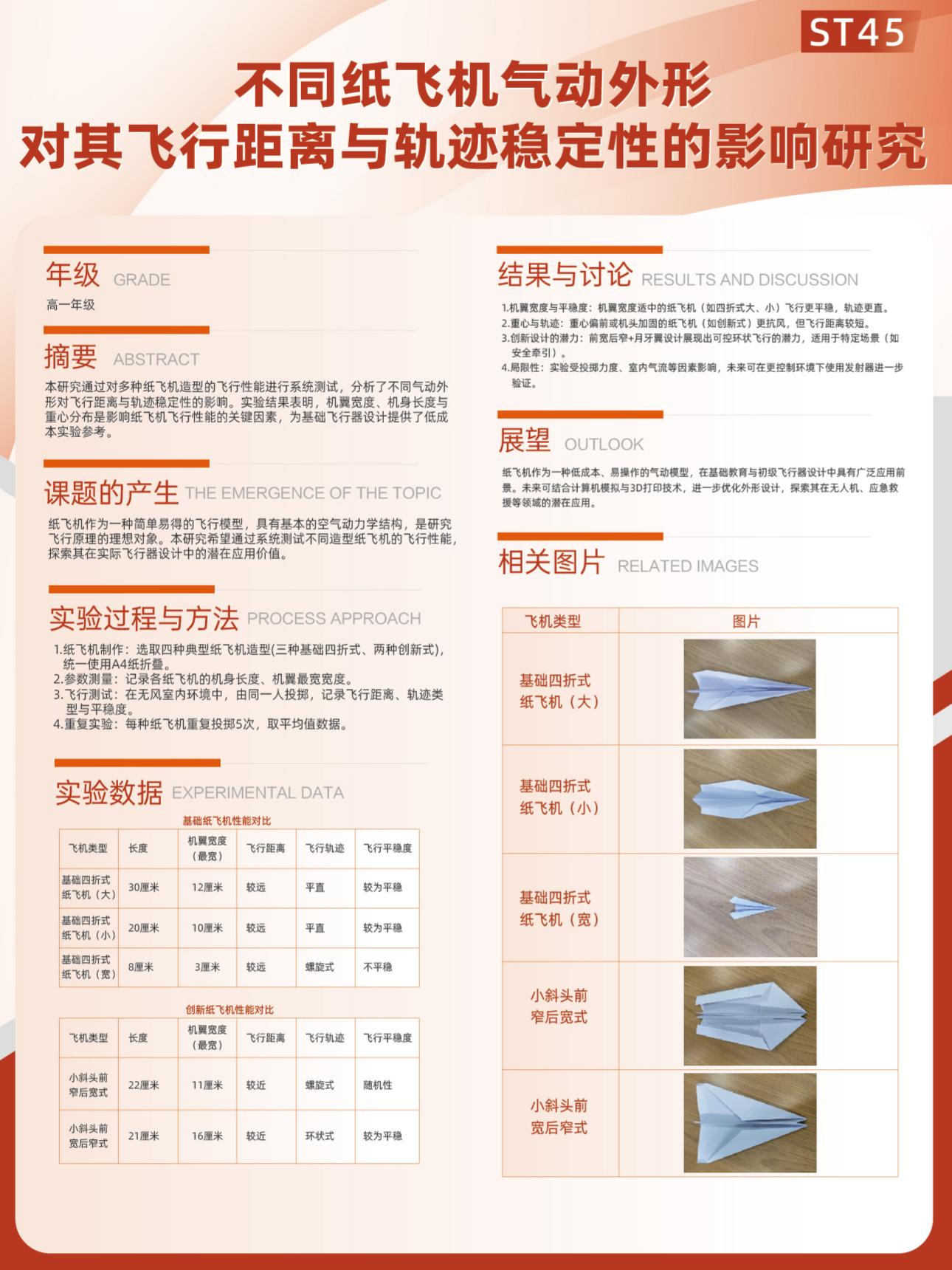 不同纸飞机气动外形对其飞行距离与轨迹稳定性的影响研究