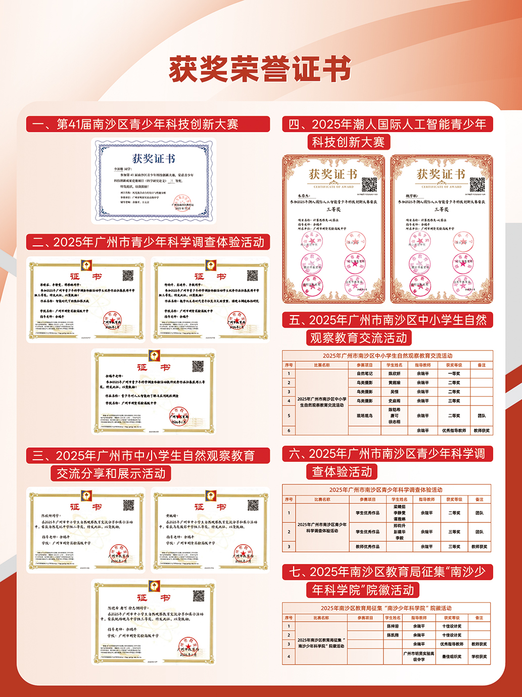 2025年学校科普教育活动荣誉证书(一)