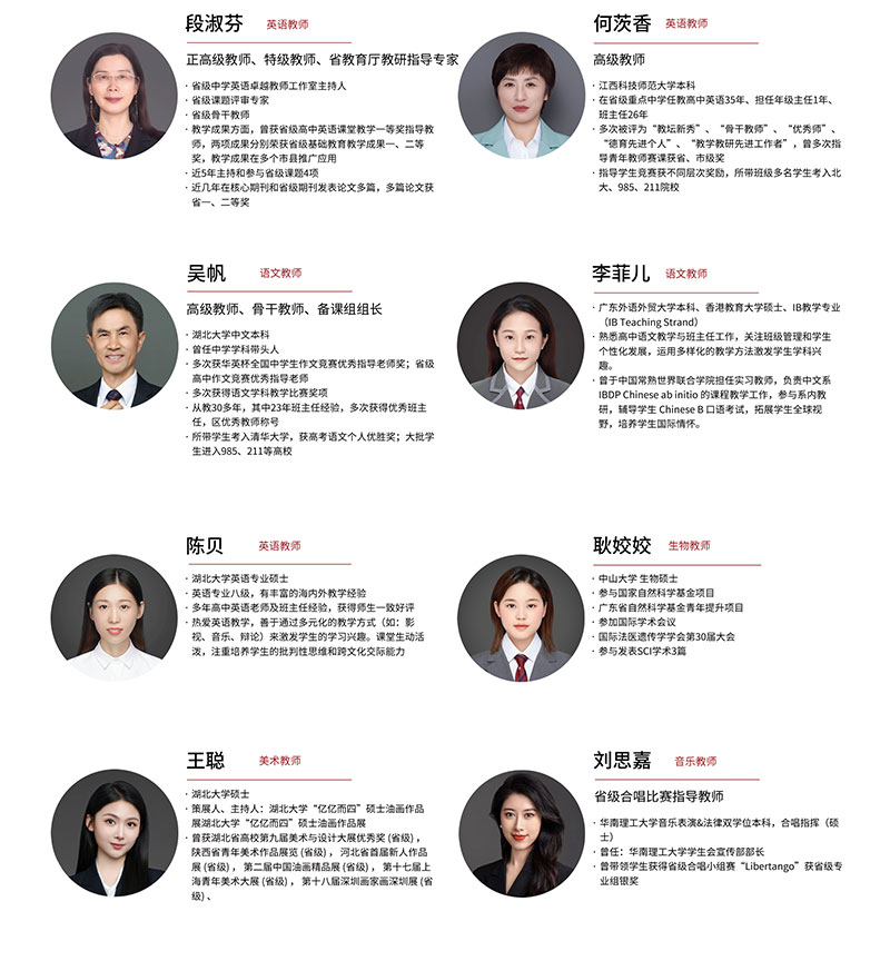 学校同时精心打造了一支由两院院士、清北创新人才培养专家教授领衔、奥赛金牌教练、特级教师、正高级教师与高级教师、省市级骨干名师组成的师德优秀、经验丰富、结构合理、充满激情的师资队伍。