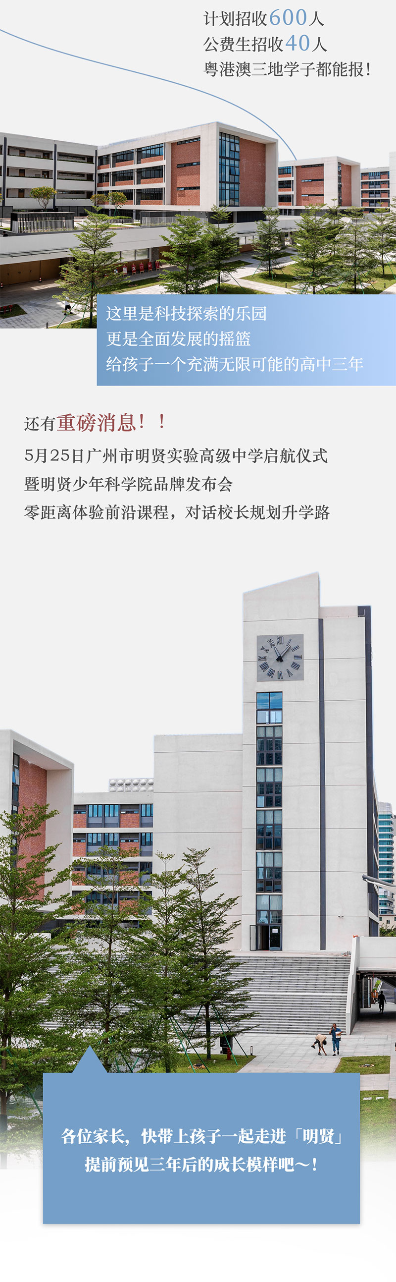 不仅如此,5月25日将举办一场广州市明贤实验高级中学启航仪式暨明贤少年科学院品牌发布会。