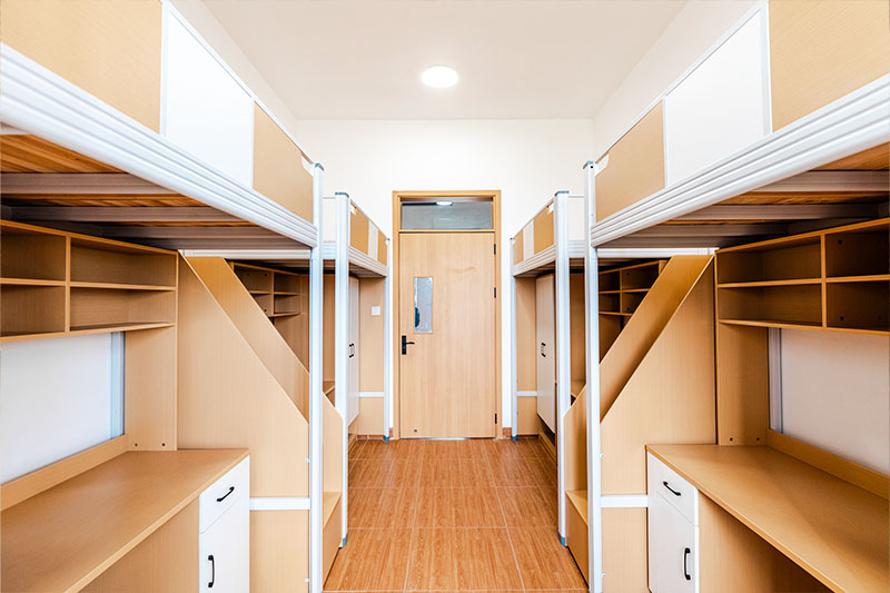 宿舍内设施齐全,床位有4人间和6人间,宽敞明亮的空间,还有生活老师24小时悉心照顾,让学生在学校也能感受到家的温暖,养成良好的生活习惯。
