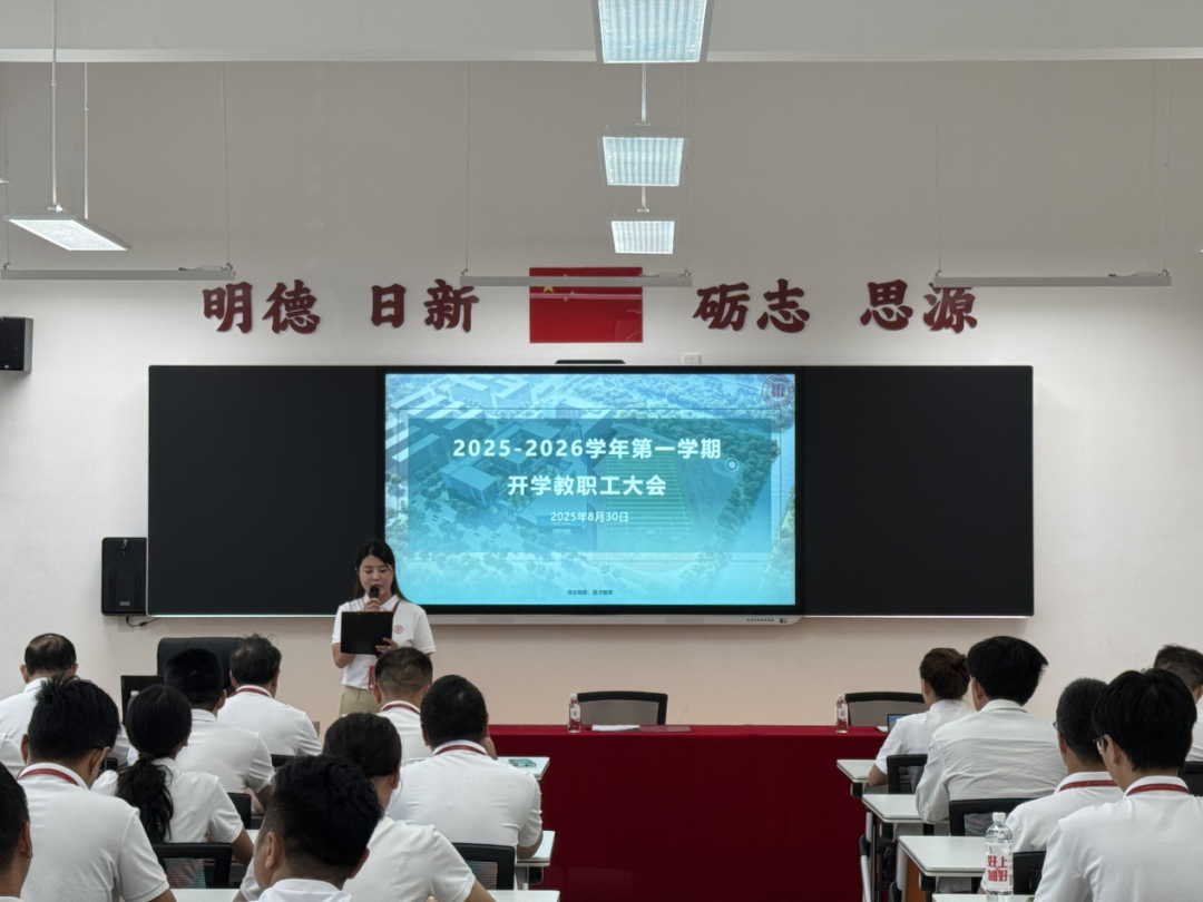 2025年8月30日,广州市明贤实验高级中学顺利召开2025-2026学年第一学期开学教职工大会,为新学校、新学年、新学期各项工作的有序开展凝聚共识、指明方向。