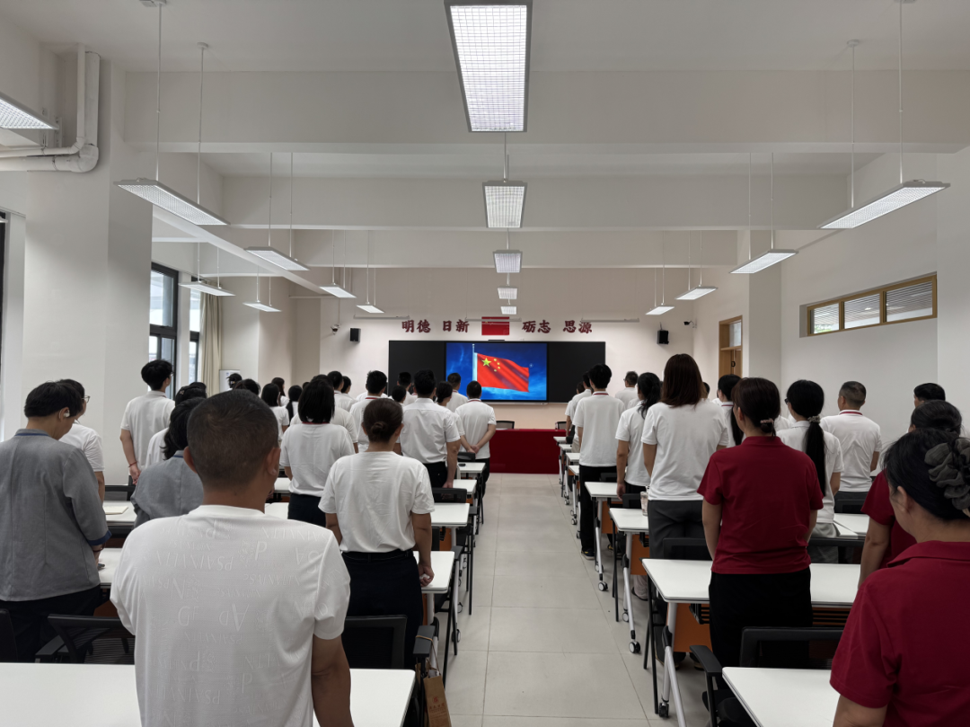 大会伊始,全场肃立,全体教职工共同奏唱国歌,以庄严的仪式感开启了新学期的征程。