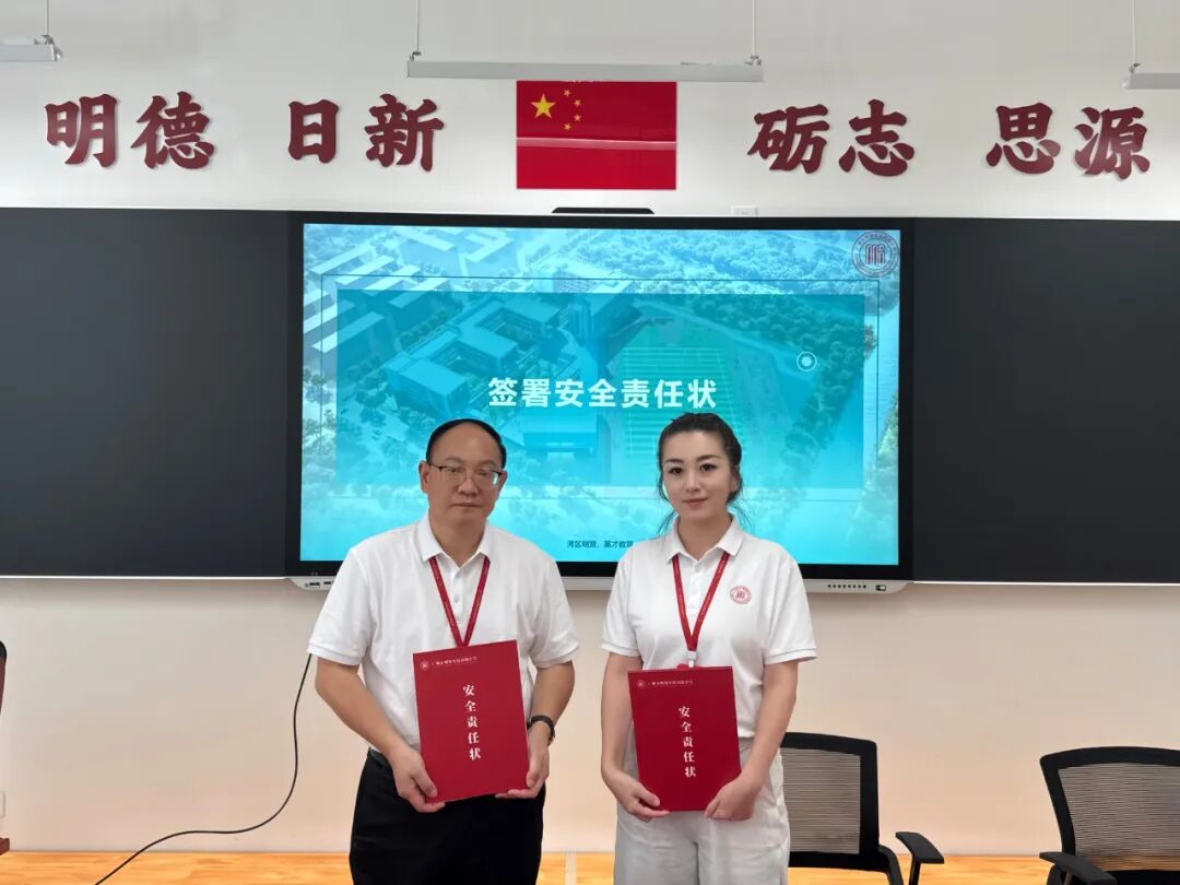 为强化校园安全责任落实,大会特别设置了安全责任状签署环节。宁彬校长率先签署,各部门负责人依次上台,郑重承诺落实岗位安全责任,筑牢校园安全防线。