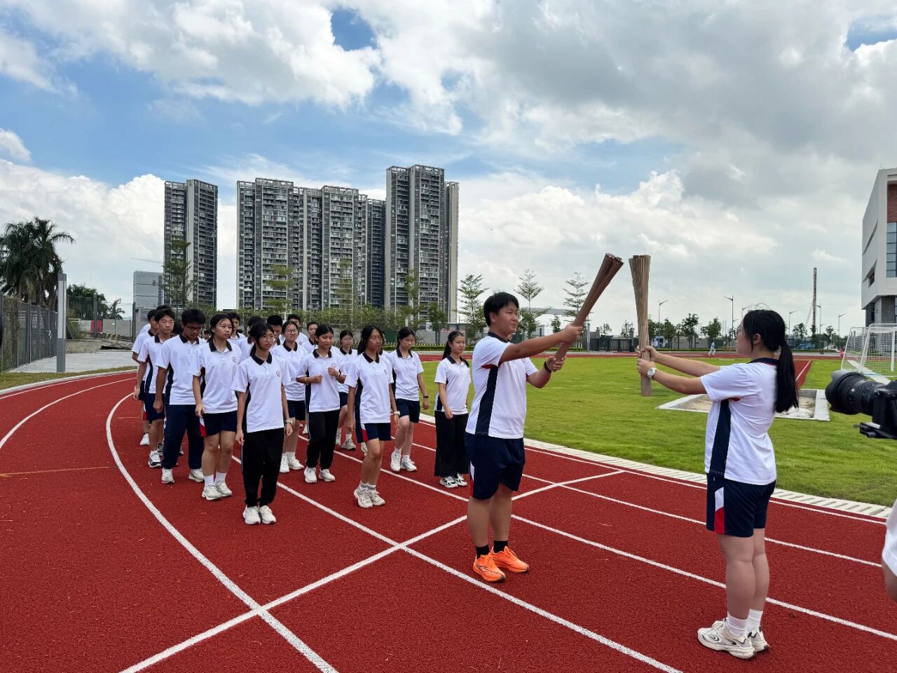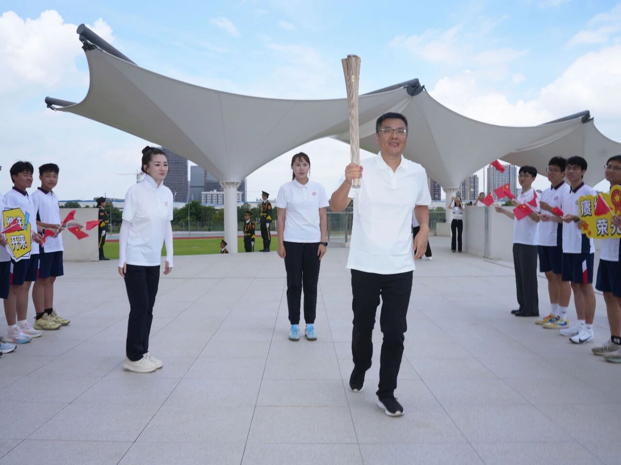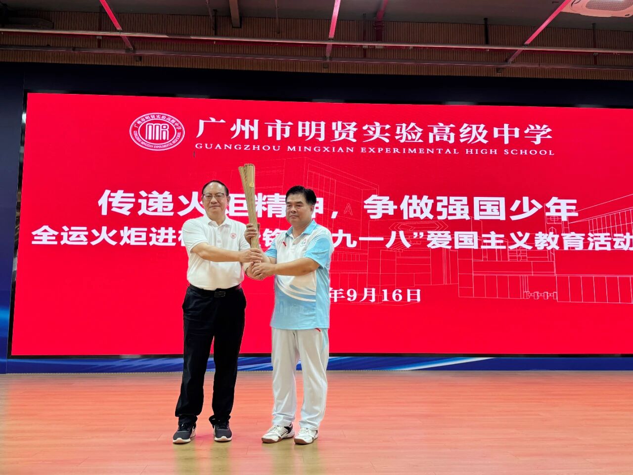 激情全运会,活力大湾区9 月 16 日上午,位于南沙枢纽区域的广州市明贤实验高级中学以“传承体育精神,凝聚奋进力量;铭记历史教训,弘扬爱国情怀”为主题,隆重举行全运火炬进校园暨铭记“九一八”爱国主义教育活动。十五运会和残特奥会广东赛区执委会火炬传递专家代表携火炬“绽放”走进校园,点燃了全校师生迎接激情盛会、争做强国少年的热情。