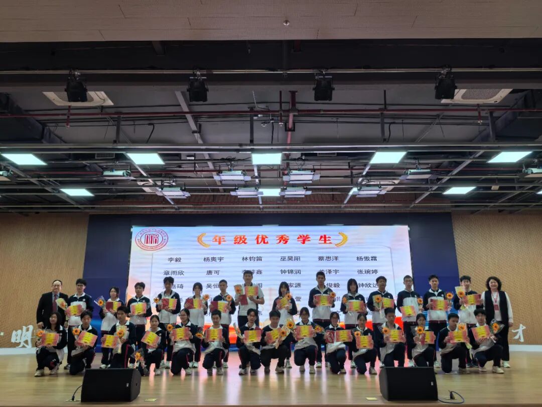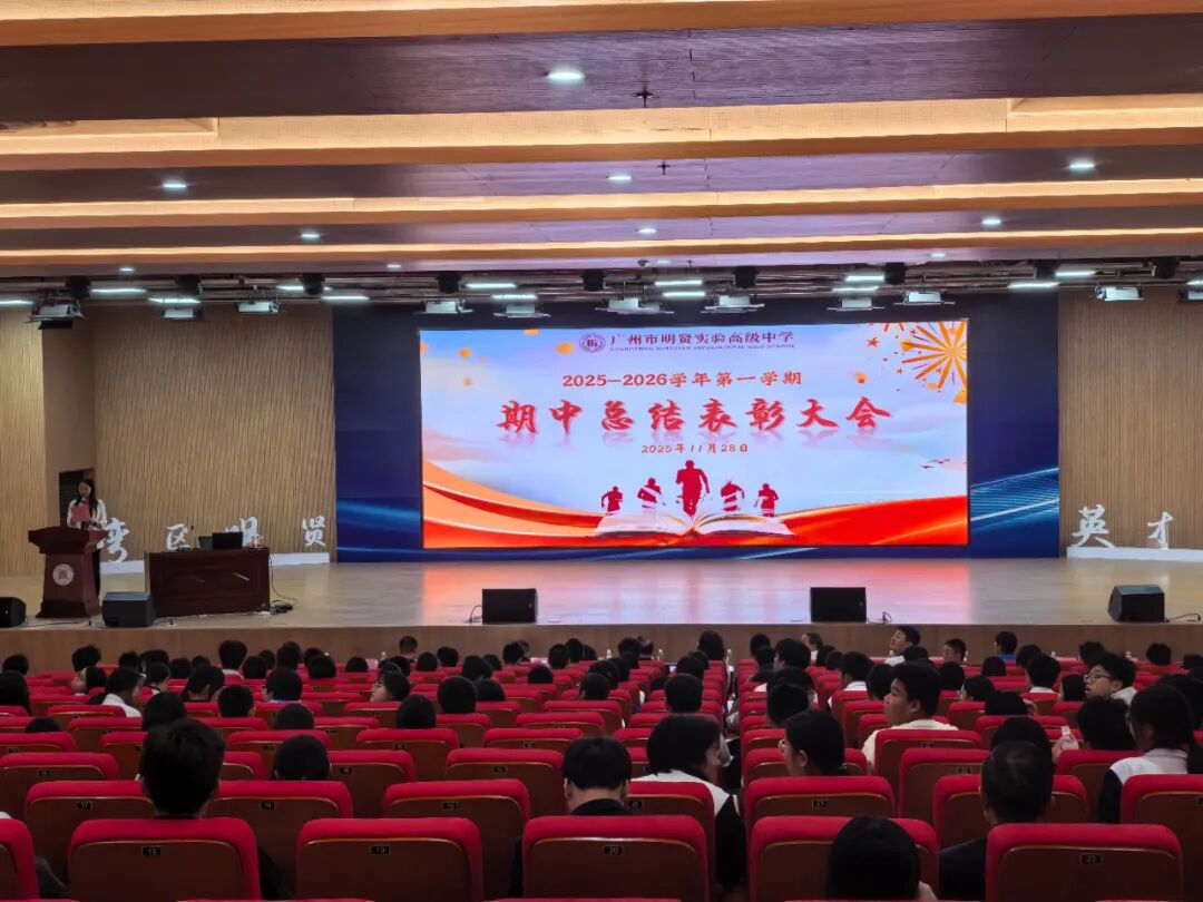 秋深果硕,征程过半。为全面总结开学以来的教育教学成果,表彰先进,激励全体学子追求卓越,并搭建家校共育的坚实桥梁,广州市明贤实验高级中学于2025年11月28日隆重举行了2025—2026学年第一学期高一年级期中总结表彰大会。