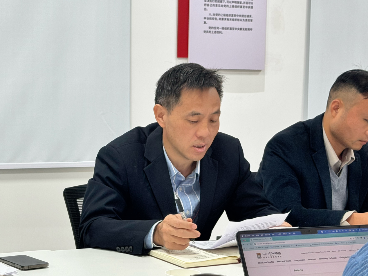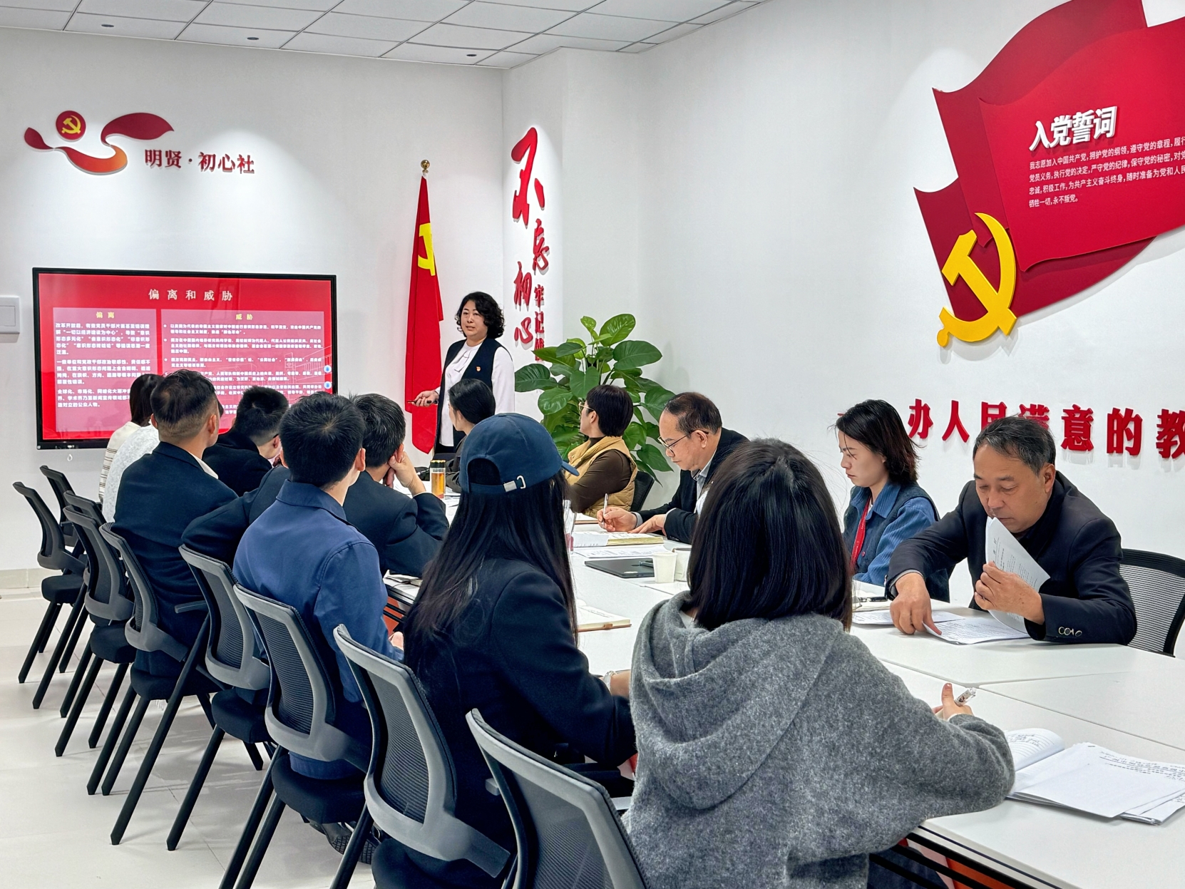 在党建活动室召开,校领导班子、全体中层以上干部、党支部全体党员、德育处干事参加会议。