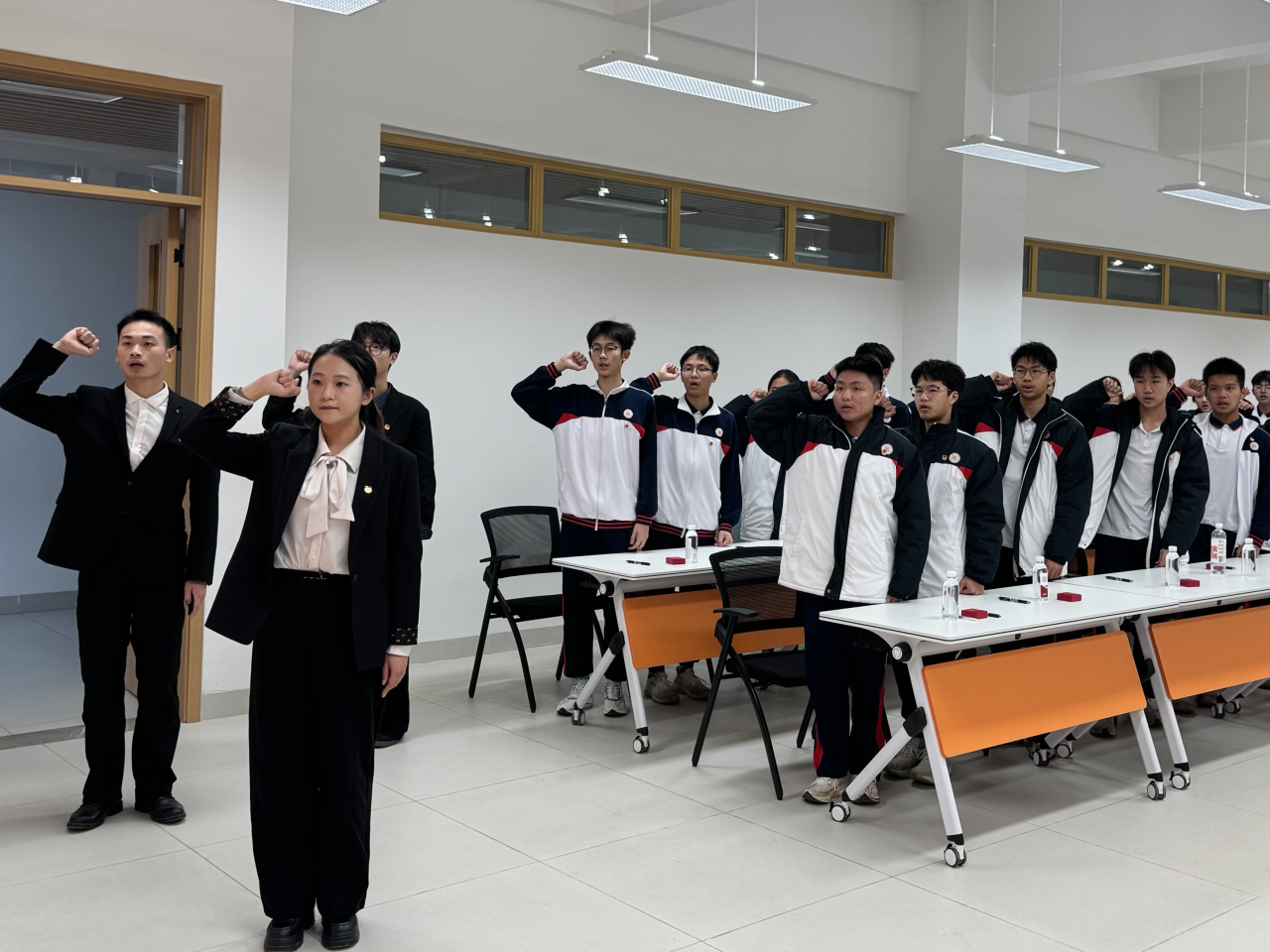同时,宁校长对新当选的团委班子提出期望,强调要坚持“党建带团建”,聚焦思想引领核心任务,始终以学生为中心,履职尽责、务实担当,密切联系青年群体,用心服务青年成长成才,着力打造有凝聚力、有战斗力、有温度的基层团组织;并对全体团员寄予厚望,希望大家坚定理想信念、牢记团员使命,在学习和工作中勇挑重担、争当表率,团结一心为学校发展贡献青春力量。