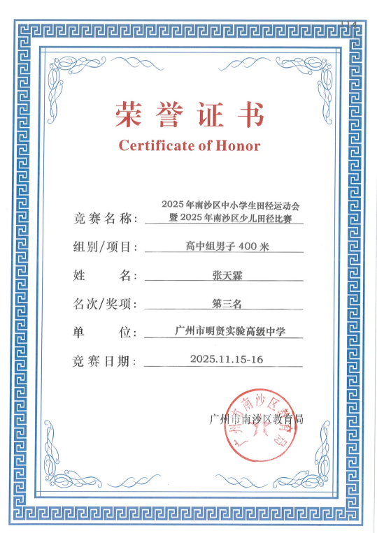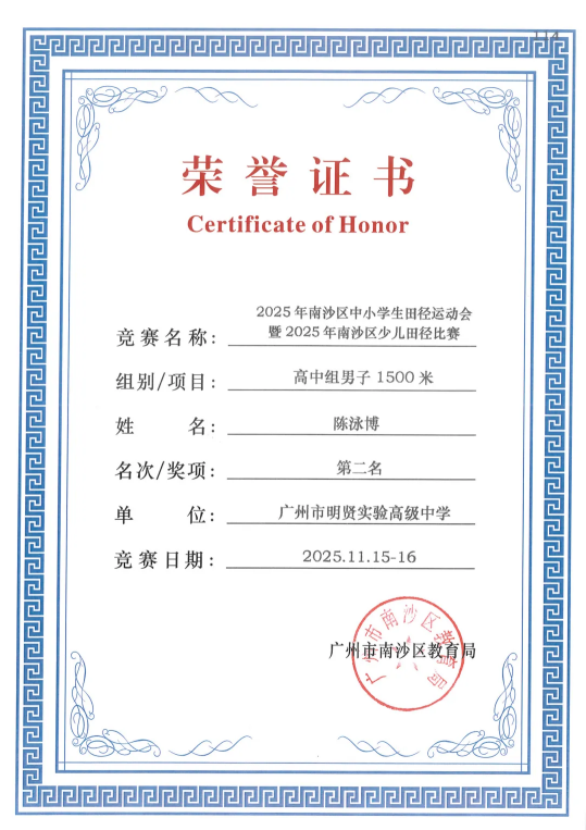 新岁伊始,一份承载着汗水与荣光的“礼物”翩然而至——2025年南沙区中小学生田径运动会的荣誉证书及奖牌,于本月正式送达我校!