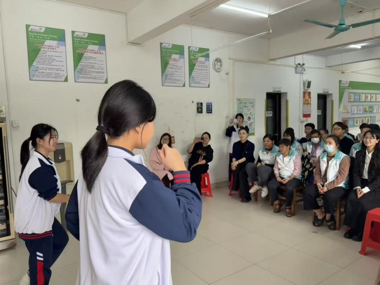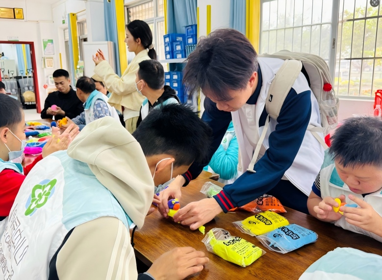 活动当天,师生志愿者首先参观工疗站,了解站内日常运作,学员们现场展示了手工作品,志愿者对学员的用心创作连连称赞。随后每名志愿者与两名学员结对,送上小礼包,通过简单互动拉近距离。学校党支部书记在致辞中表示,希望通过此次活动让学生走进社区、走近特殊群体,在服务中学会关爱与担当。